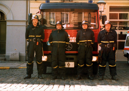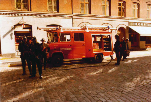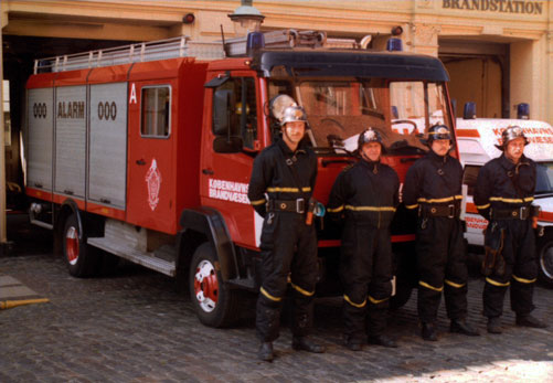 Sprøjteholdet og stigeholdet på Adelgades brandstation 1988