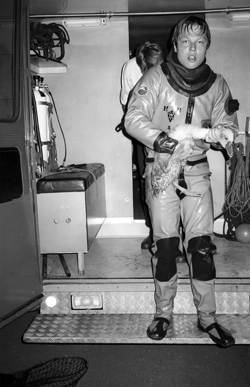 Til venstre Vandykker. Til højre svane reddet i Utterslev