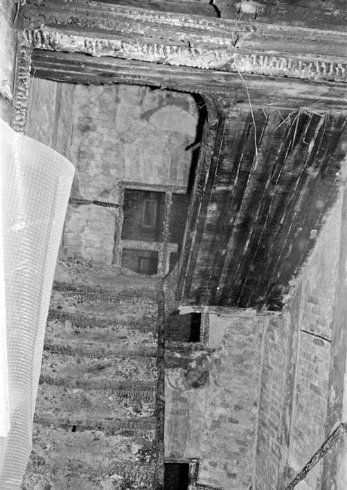 fra Stengade ind til den brændende bygning.
