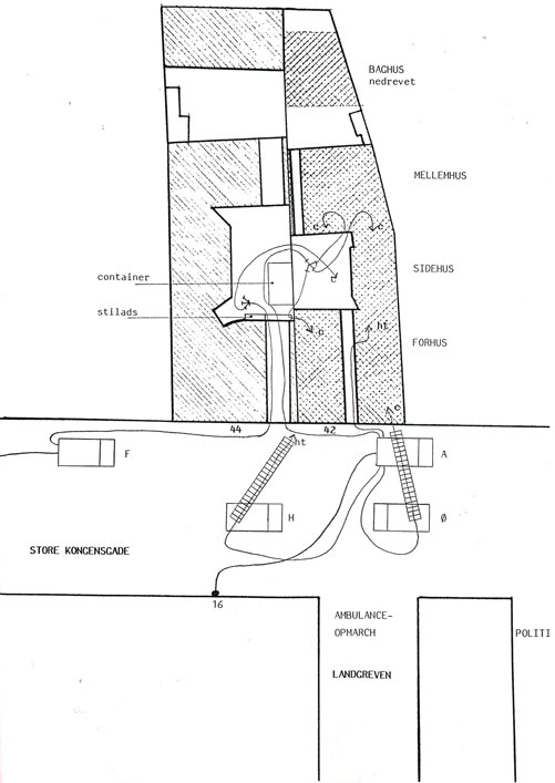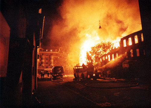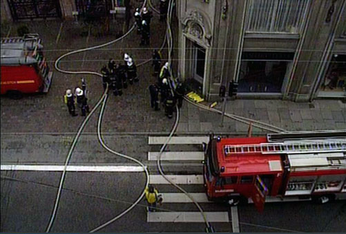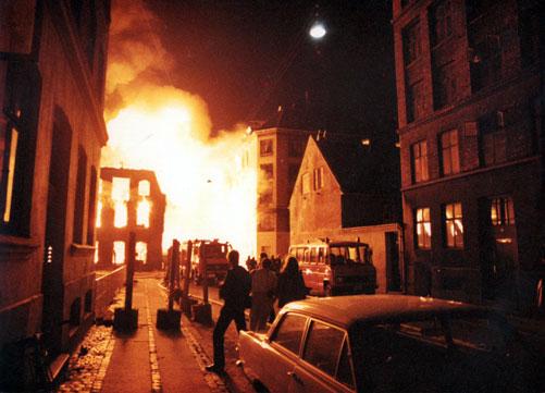 i gaderne omkring brandstedet.